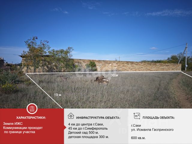 Продается земельный участок общей площадью 6 соток в городе Саки, Республика Крым. Участок расположен в новом активно застраивающемся массиве. Вид разрешенного использования: Для индивидуального жилищного строительства (ИЖС). Земельный участок правильной прямоугольной формы, с ровным рельефом, свободный от построек и насаждений. Границы и площадь участка уточнены, проведено межевание. Коммуникации: * Линии электропередач проходят по границе участка, есть подключение к электричеству. * вода: на начальном этапе скважина, в перспективе центральный водопровод по улицам. * Газ - газовая магистраль подведена к массиву и установлен ГРП, в скором времени прокладка газопровода по улицам массива. Отличная транспортная доступность, регулярное автобусное сообщение, до остановки и Евпаторийского шоссе - 150 метров, до озера - 500 метров, до моря и благоустроенных пляжей 3 км, до центра города - 2км. Само месторасположение предполагает тихую и спокойную жизнь и в то же время близость к городу. Хорошая экология. Полный пакет документов, право собственности РФ. Наша комиссия 59000 р.+1% от стоимости объекта, но не менее 70000 р. МЫ ГАРАНТИРУЕМ ФИНАНСОВУЮ БЕЗОПАСНОСТЬ ДЛЯ НАШИХ КЛИЕНТОВ. Полное юридическое сопровождение сделки. Высокий шанс одобрения ипотеки. Звоните, с удовольствием ответим на ваши вопросы! Код пользователя: 113474 Номер в базе: 9635370