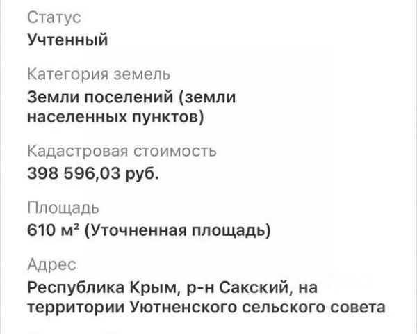 Купить участок 6 соток в сельском поселении Уютненское Сакского района