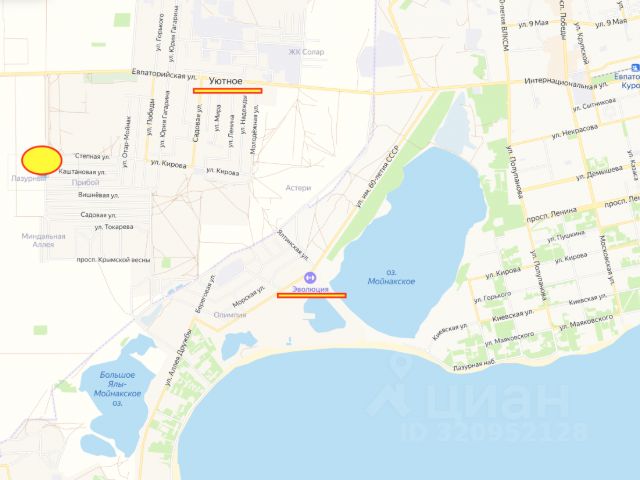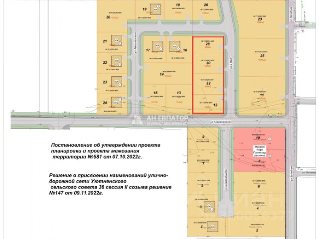 Продам земельный участок 6 соток, с. Уютное на пересечении ул. Айвазовского и 9 Мая, на закрытой территории, в районе Песчанки, 10 км до Евпатории.