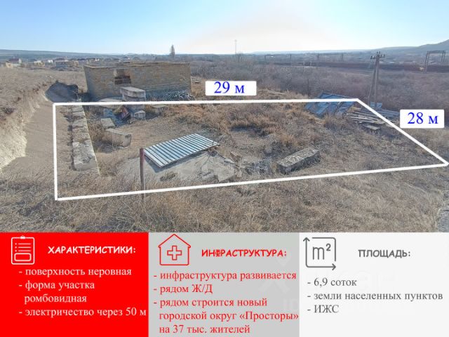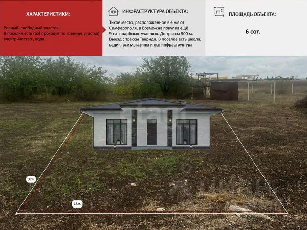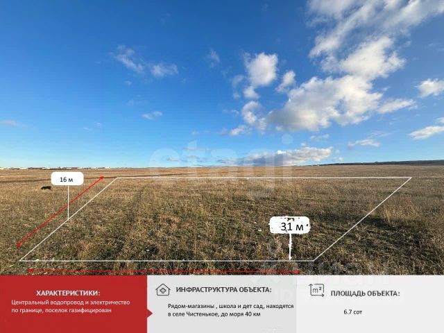 Участок ИЖС в новой нарезке в селе Чистенькое. Продается земельный участок 6.38 соток, расположенный в с.п. Чистенькое, всего в 3 км от Симферополя. Участок ровный, правильной формы, свободный от застройки, что позволяет реализовать различные архитектурные решения и рационально спланировать территорию. Участок в удобный локации, быстрый выезд на трассу Симферополь-Севастополь. До моря - порядку 50 км. Окружающая территория отличается спокойной обстановкой. Вблизи расположены лесные массивы и водоемы. Район на[одится в стадии формирования жилой застройки. Звоните для уточнения деталей и записи на просмотр. Код объекта: 10928954 МЫ ГАРАНТИРУЕМ ФИНАНСОВУЮ БЕЗОПАСНОСТЬ ДЛЯ НАШИХ КЛИЕНТОВ. Полное юридическое сопровождение сделки. Высокий шанс одобрения ипотеки. Звоните, с удовольствием ответим на ваши вопросы! Код пользователя: 194981 Номер в базе: 10928954 Купить участок 6 соток в селе Чистенькое Симферопольского района.