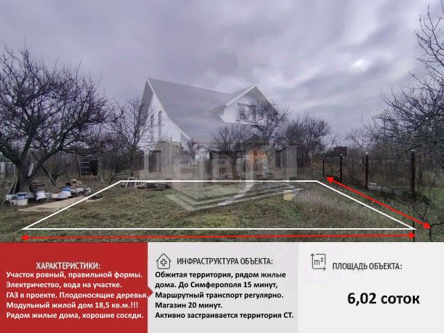 Продается уникальный участок, в живописном уголке Крыма, который станет идеальным местом для вашего нового дома или дачи! Участок, площадью 6 соток, расположен в Симферопольском районе, в Трудовском сельском поселении, СНТ "Земляничка". Участок ровный и ухоженный. В 2027 году ожидается газификация, что значительно повысит комфорт проживания. Электричество доступно всего в 20 метрах от участка, а до асфальтированной дороги всего 300 метров это обеспечивает легкий доступ к инфраструктуре. Проведено межевание, участок находится в собственности, все документы оформлены в соответствии с законодательством РФ. Не упустите шанс стать владельцем этого замечательного участка! Реальному покупателю возможен разумный торг. Звоните и записывайтесь на просмотр ваш идеальный участок ждет вас! Номер объекта: 3994906 МЫ ГАРАНТИРУЕМ ФИНАНСОВУЮ БЕЗОПАСНОСТЬ ДЛЯ НАШИХ КЛИЕНТОВ. Полное юридическое сопровождение сделки. Высокий шанс одобрения ипотеки. Звоните, с удовольствием ответим на ваши вопросы! Код пользователя: 142214 Номер в базе: 3994906