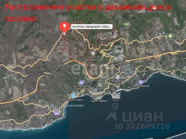 Социальная инфраструктура: Магазины, супермаркеты, школы, детские сады, амбулатория всё в поселке или соседних населенных пунктах (Мисхор, Гаспра).