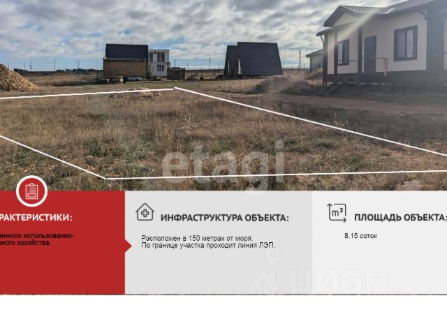 Продается участок 8,98соток у самого моря в пгт.Черноморское! Категория земли: Земли населенных пунктов. Вид разрешенного использования: ИЖС. Участок прямоугольной формы, с небольшим уклоном, каскадный ландшафт, возведены с подпорные стенки. Все коммуникации проходят по границе участка. Удобный подъезд, улица застроена современными домами. Участок выгодно расположен, шикарный вид на море. В пгт Черноморское отлично развита инфраструктура: есть рестораны, места для развлечений, МФЦ, банки, школы, детсады, магазины. До моря всего 190 метров. Потрясающие виды , обрывистые берега. А так же комфортный пляж, с пологим песчаным берегом. Пляж убирается каждый день и там есть вся пляжная инфраструктура: кафе, лежаки. Удобная транспортная доступность делает этот участок привлекательным как для строительства частного дома, так и для инвестиций в курортную недвижимость. Звоните, документы полностью готовы к сделке. МЫ ГАРАНТИРУЕМ ФИНАНСОВУЮ БЕЗОПАСНОСТЬ ДЛЯ НАШИХ КЛИЕНТОВ. Полное юридическое сопровождение сделки. Высокий шанс одобрения ипотеки. Звоните, с удовольствием ответим на ваши вопросы! Код пользователя: 183659 Номер в базе: 8667637 Отличный участок 8 соток.