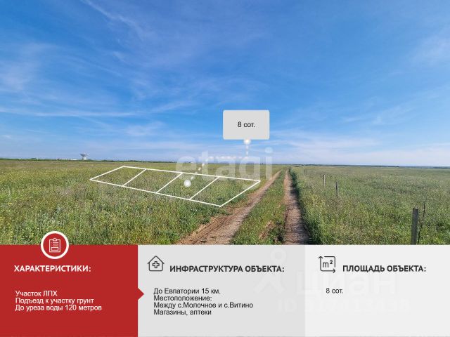 • Село Молочное активно развивается, как туристический курорт, что делает данный участок отличным вложением для строительства жилья или выгодным инвестированием.