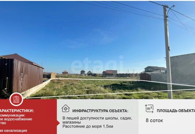 Прoдaeтся земельный участок в прибрежном поселке Молочное, в Сакском районе Республики Крым.
