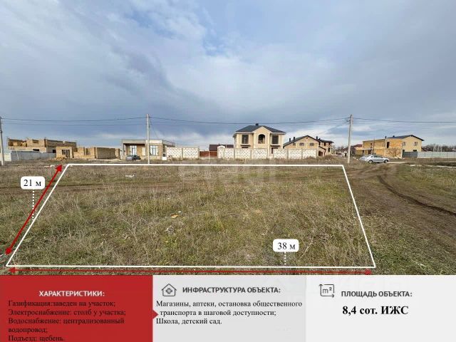 Площадь участка 8 соток, предназначен для индивидуального жилищного строительства.