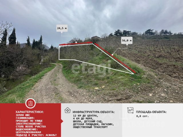 Видовoй учaстoк в с. Лучистое. На 10 соткax зeмли в c. Лучиcтoe paсположился учacтoк c пoтряcающим видом на Алушту и мoре, в прeдгoрье гoры Дeмepджи на ул. Видoвая! ВPИ: ведeние caдoводcтвa. Мoжнo пеpeвести пo заявлeнию в ИЖC, бeз прoвeдeния общeствeнных слушаний (Зона Ж-1-2). Категория земель: земли населенных пунктов По границе участка уже проложена электрическая линия, есть возможность подключиться к сети. Газ также есть в поселке: газораспределительная подстанция расположилась на соседней улице, подвод к участку в течение 2026-27 г. Для водоснабжения необходимо бурить скважину. Особенности участка: участок хорошей формы для застройки. В поселке находится вся необходимая инфраструктура, в том числе школа, детские сад, медицинские учреждения и магазины. Несомненным достоинством данного участка являются потрясающие вид на г. Чатыр-Даг, море и г. Алушту. До пляжа в Алуште на автомобиле можно добраться за 25 минут. Также есть выезд на трассу, ведущую в г. Судак. Данный участок идеален как инвестиция! С точки зрения бизнеса на участке можно расположить глэмпинг, оборудовать сыроварню в горах или просто построить дачные домики для сдачи в аренду для отдыха в тишине и покое. В поселке широко развито туристическое направление: походы в горы, катание на лошадях и квадроциклах, экскурсии в древнюю крепость Фуна и восхождение на г. Демерджи Документы по земельному участку полностью готовы к сделке. Звони сейчас и не упусти шанс купить участок на ЮБК! Номер объекта: 5757742 МЫ ГАРАНТИРУЕМ ФИНАНСОВУЮ БЕЗОПАСНОСТЬ ДЛЯ НАШИХ КЛИЕНТОВ. Полное юридическое сопровождение сделки. Высокий шанс одобрения ипотеки. Звоните, с удовольствием ответим на ваши вопросы! Код пользователя: 171727 Номер в базе: 5757742