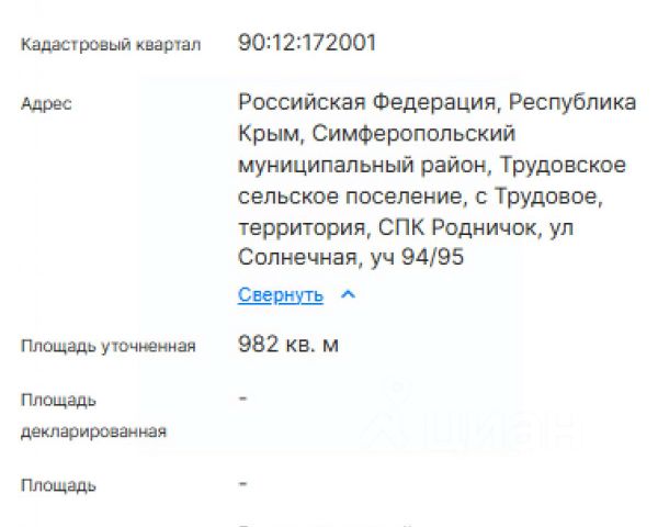 Свой участок ,в лучшем районе Крыма!Симферопольский муниципальный район, Трудовское сельское поселение,территория СНТ "УЮТ-СВВПСУ". Прекрасный участок ,под строительство жилого дома, в ближайшем пригороде города Симферополя. Ровный участок, 9.2 сотки, правильной формы. Удобный подъезд по грунтовой дороге. Все коммуникации по границе участка: газ, электричество. Тихий и спокойный район, в ближайшем пригороде Симферополя, уже застроен. Инфраструктура района многогранно развита, в пешей доступности школа, детский сад, магазин ПУД, остановка общественного транспорта, удобный выезд на трассу Таврида. Документы на участок оформлены в соответствии с законодательством РФ. Не упустите свой шанс! Звоните уже сейчас! Если будет занято, наберите пожалуйста ещё раз! Проведем показ в кратчайший срок! Номер объекта: 2841591 Код пользователя: 101538 Номер в базе: 2841591 Отличный участок 9 соток.