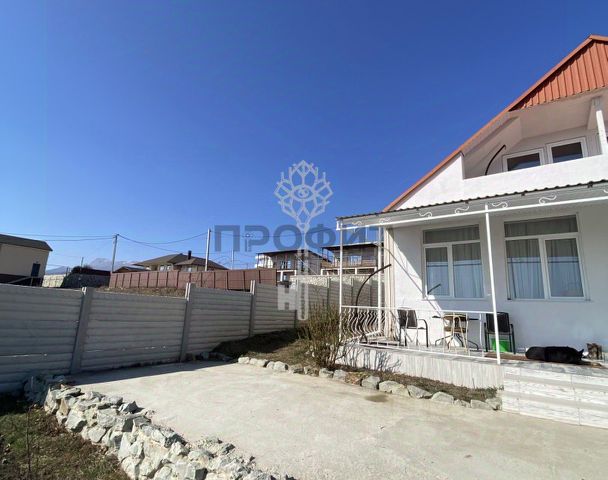 Дом построен с применением ракушечника (1 этаж) и каркасное строение (2-ой этаж). Облицовка фасада дома выполнена по технологии "Короед".