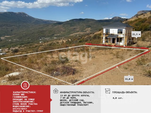 В продаже видовой (360 градусов вид на горы, Алушту) земельный участок в экологичном месте. Площадь земельного участка 5 соток. Участок расположен в п. Лучистое, в ближайших окрестностях города-курорта Алушта. Отличная локация для строительства жилого дома и постоянного проживания. Удобный подъезд прямо к участку.