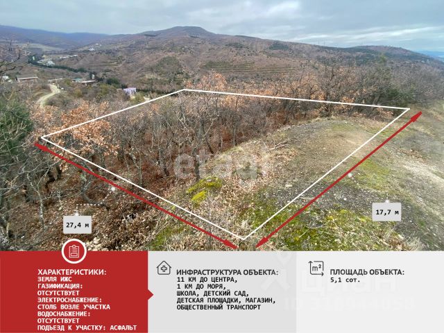Потрясающее предложение: земельный участок площадью 10,85 соток, правильной формы. Расстояние до пляжа 1,4 км. Участок расположен на умеренном склоне, соответственно Вам никто и никогда не закроет вид на море. Построив дом своей мечты, на данном земельном участке, вы сможете встречать рассветы и провожать закаты, ощущая на себе легкий морской бриз, под волшебные звуки волн прибоя. Покупайте и воплощайте свои самые смелые фантазии, даже инфинити-бассейн с морской водой. Если вы мечтатель, то вы стали на пять шагов ближе к своей мечте, читая это объявление. Отличное предложение по отличной цене.
