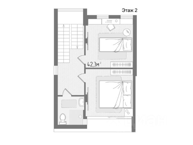 - 2-ой этаж (88,8 кв.м.): четыре жилых комнаты 17,1 кв.м., 17,5 кв.м., 16, 8 кв.м., 9,6 кв.м., 2 санузла 5,5 и 5,3 кв.м., лестн. холл 17 кв.м.