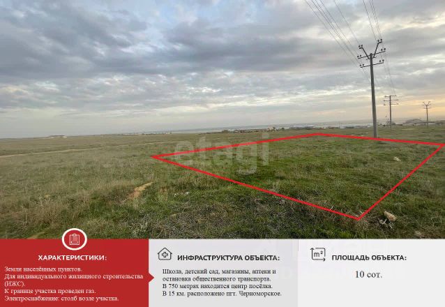 Продаётся земельный участок площадью 10 соток в селе Межводном Черноморского района. Земля относится к категории населенных пунктов с разрешенным использованием под индивидуальное жилищное строительство. Участок имеет правильную прямоугольную форму, что упрощает процесс проектирования и размещения будущего дома. К границе участка уже подведен газ, а электрические сети расположены в непосредственной близости, при этом имеется договор с РЭС на подключение, что значительно ускоряет начало строительных работ. Территория не огорожена, предоставляя новому владельцу полную свободу выбора типа ограждения. Участок расположен в тихой части села с перспективной застройкой, при этом всего в 750 метрах находится центр с развитой инфраструктурой: школа, детский сад, магазины, аптека и остановка общественного транспорта. В 15 км расположен поселок городского типа Черноморское. Все документы готовы. Звоните, отвечу на все вопросы, проведу показ. МЫ ГАРАНТИРУЕМ ФИНАНСОВУЮ БЕЗОПАСНОСТЬ ДЛЯ НАШИХ КЛИЕНТОВ. Полное юридическое сопровождение сделки. Высокий шанс одобрения ипотеки. Звоните, с удовольствием ответим на ваши вопросы! Код пользователя: 192814 Номер в базе: 10408446 Загородная недвижимость в переулке Спортивный в селе Межводное.