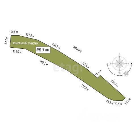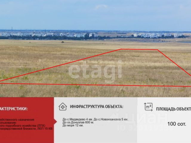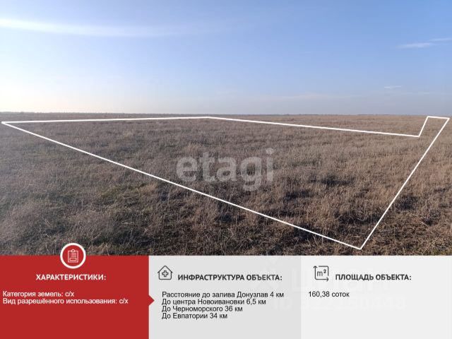 Продается участок для ЛКХ, прямоугольной формы, площадью 1 га, расположенный за пределами Новоивановского сельского поселения Черноморского района Республики Крым.