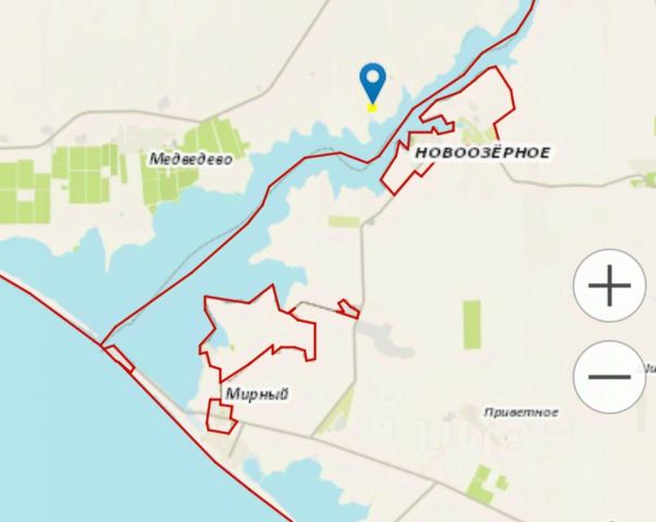До береговой линии 900 м. Через залив открывается красивый вид на пгт. Новоозерное.