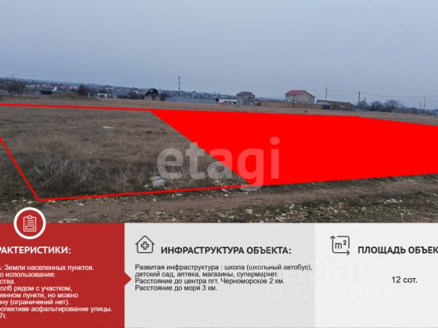 Продам земельный участок для строительства коммерческой недвижимости в самом центре ПГТ Черноморское западного берега Крыма площадью 8 соток. Категория земли: земли населенных пунктов вид разрешенного использования: магазины. Участок в аренде на 49 лет с возможностью продления аренды или выкупа. Отличная инвестиция-рядом Черноморский пляж, летние виды спорта, участок подходит под автомойку. На участке построен бокс на два автомобиля. Есть скважина, электричество. Расположение участка очень удачное для ведения бизнеса. Расположен за остановкой общественного транспорта на пересечении двух центральных улиц. Договор заключается напрямую с собственником. Полное сопровождение сделки и максимальное содействие в удачном взаимоотношении с собственником гарантируем. Документы готовы к продаже. Отвечу на любые ваши вопросы. МЫ ГАРАНТИРУЕМ ФИНАНСОВУЮ БЕЗОПАСНОСТЬ ДЛЯ НАШИХ КЛИЕНТОВ. Полное юридическое сопровождение сделки. Высокий шанс одобрения ипотеки. Звоните, с удовольствием ответим на ваши вопросы! Код пользователя: 182478 Номер в базе: 6795103