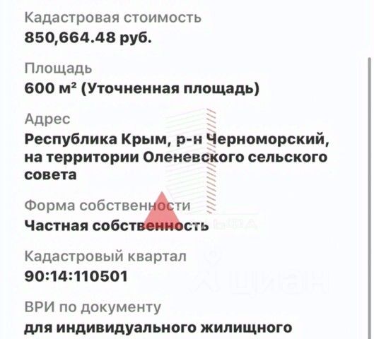 Участок 58 соток (ИЖС) расположен в Республика Крым, Черноморский муниципальный район, с. Оленевка, улица Ленина, первая линия. Подъезд асфальтированный. Позвоните нам, чтобы узнать все детали! Коммуникации: -Электричество: заведено -Вода: городская -Газ: на границе участка -Канализация Участок 46 сот Кадастровый номер 90:14:110101:7804 -Разрешенное использование: Туристическое обслуживание: Размещение пансионатов, туристических гостиниц, кемпингов, домов отдыха, размещение детских лагерей. -Разрешенное использование: Хранение автотранспорта: Размещение отдельно стоящих и пристроенных гаражей, в том числе подземных, предназначенных для хранения автотранспорта, в том числе с разделением на машино-места. Участок 12 сот Кадастровый номер 90:14:110101:7643 -Разрешенное использование:общественное питание Размещение объектов капитального строительства в целях устройства мест общественного питания (рестораны, кафе, столовые, закусочные, бары) -Разрешенное использование: Туристическое обслуживание: Размещение пансионатов, туристических гостиниц, кемпингов, домов отдыха, размещение детских лагерей. -Разрешенное использование: Магазины Размещение объектов капитального строительства, предназначенных для продажи товаров, торговая площадь которых составляет до 5000 м 2 На участке Объект незавершенного строительства, кадастровый номер 90:14:110101:317- 92%, Без координат границ - 1 622,2 кв. м: Мыс Тарханкут является Национальным заповедником и самой западной точкой крымского полуострова, на берегу которого расположено озеро Лиман. Озеро Лиман сегодня представляет большую перспективу на п-ове Крым. И последнее слово в решении вопроса, как ее реализуют за человеком. От него зависит, будет ли сохранено и разумно использовано минеральное богатство Оленевки Инфраструктура: Участок расположен на первой линии улицы Ленина, где расположены: рынок, почта, магазины, банкоматы, вендинговые автоматы, аптека, мед. пункт, детский сад и школа. Пляж в Оленевке называют Крымские Мальдивами. Берег оборудован теневыми зонтиками, есть Дельфинарий, множество мест отдыха и кафе. Ежегодно проводится музыкально-спортивный фестиваль "Экстрим Крым". Благодаря своему удачному расположению, Оленевка является идеальным местом для занятий множеством видов спорта. Подходит для наличного расчета. Документы проверены юристами и готовы к сделке. Профессиональное сопровождение до получения права собственности. Добавьте предложение в закладки, чтобы не потерять! Загородная недвижимость в сельском поселении Оленевское Черноморского района.