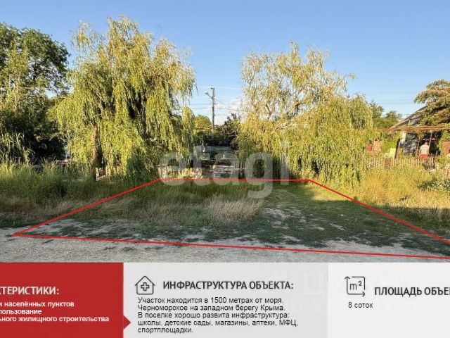 Продается земельный участок в поселке городского типа Черноморское. Общая площадь земельного участка 8 соток. Назначение земельного участка -для индивидуального жилищного строительства. Все коммуникации рядом. По улице проходит свет, газовая труба, скважина можно бить. Вокруг жилая застройка. Участок находится в 1500 метрах от моря. Черноморское - приморский поселок на западном берегу Крыма. В поселке хорошо развита инфраструктура: школы, детские сады, магазины, аптеки, МФЦ, спортплощадки. Самый красивый пляж с бирюзовой водой и белым песком. Хорошее транспортное сообщение во все стороны Крыма. Документы готовы к сделке! Звоните, пишите по всем вопросам. МЫ ГАРАНТИРУЕМ ФИНАНСОВУЮ БЕЗОПАСНОСТЬ ДЛЯ НАШИХ КЛИЕНТОВ. Полное юридическое сопровождение сделки. Высокий шанс одобрения ипотеки. Звоните, с удовольствием ответим на ваши вопросы! Код пользователя: 183659 Номер в базе: 3449811 Продается загородная недвижимость на проезде Западный в поселке городского типа Черноморское.