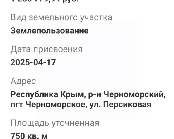 Продаётся участок 7,5 сот. (ИЖС) пос. Черноморское, ул. Персиковая. Участок правильной прямоугольной формы Категория земель: Земли Населённых Пунктов. Разрешённое использование: ИЖС Кадастровый номер 90:14:010103:5746 Электричество по границе участка водопровод - нужно делать скважину канализация - септик (нужно делать) газ по границе участка Подъезд отсыпан щебнем. Район активной застройки. Экологичный район, жемчужина западного берега Крыма. Чистейшее море, пляж. До моря, пляжа 2500 метров. Районный центр, поселок Черноморское динамично развивается, запущены ряд программ по развитию инфраструктуры, что повышает статус региона и уровень комфорта для проживания и отдыха. Земля в собственности, документы готовы к сделке, звоните. Аргументированный торг приветствуется. При обращении укажите номер 541506 Номер объекта: #1/541506/17283