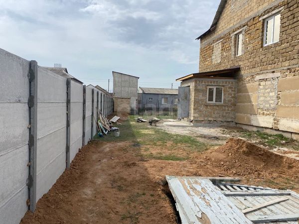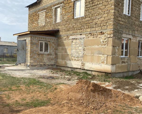 Трёхэтажное здание 165 м2. Материал камень-ракушечник, кровля - металлочерепица, здание оштукатурено снаружи, внутри выложено плиткой из керамогранита на полу и на стенах.