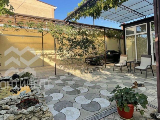 Трёхэтажное здание 165 м2. Материал камень-ракушечник, кровля - металлочерепица, здание оштукатурено снаружи, внутри выложено плиткой из керамогранита на полу и на стенах.