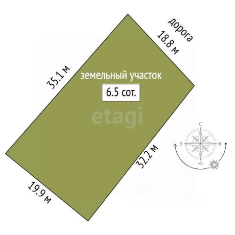 Общая площадь - 6,5 соток. Участок ровной прямоугольная формы, что значительно упрощает планировку и строительство. Удобный подъезд по грунтовой дороге.
