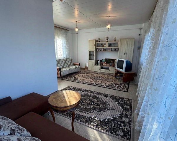 Дом в настоящее время реконструируется, готовность 80%, на первом этаже Г-образная комната площадью 39 м2, кухня - 10 м2, на втором этаже: Г-образная комната площадью 39 м2, и комната 20 м2, есть чердак и подвал, у входа - навес-оранжерея, рядом высажен виноград. В доме санузел и раковина, коммуникации заведены, установлена бочка для воды возле дома. По кадастру дом 53,5м2, как до реконструкции, обшит мягкой черепицей, внутри до половины стены обшиты ламинатной доской, везде дерево.
