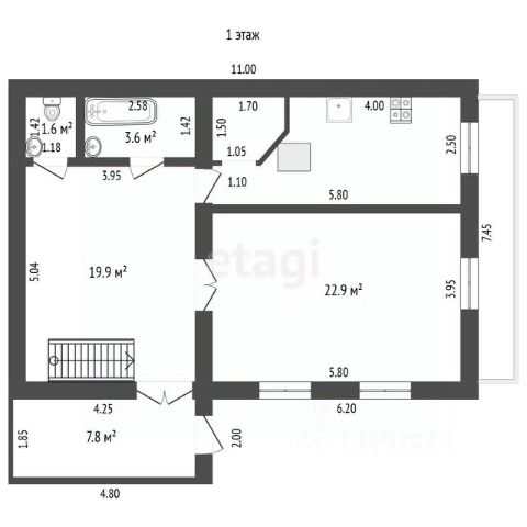 санузел, выход в гараж и из гаража во двор, лестница на 2 этаж.