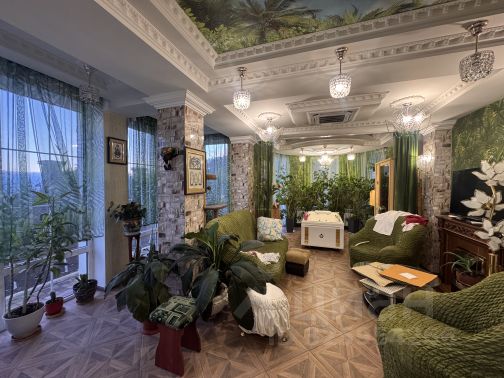 6 гостевых спален, 6 ванных комнат, гардеробная, постирочная, комната для персонала, кухня-столовая, два больших каминных зала с действующими английскими каминами, турецкая баня хамам, 3 зоны отдыха, бильярдная, зона для игры в покер.