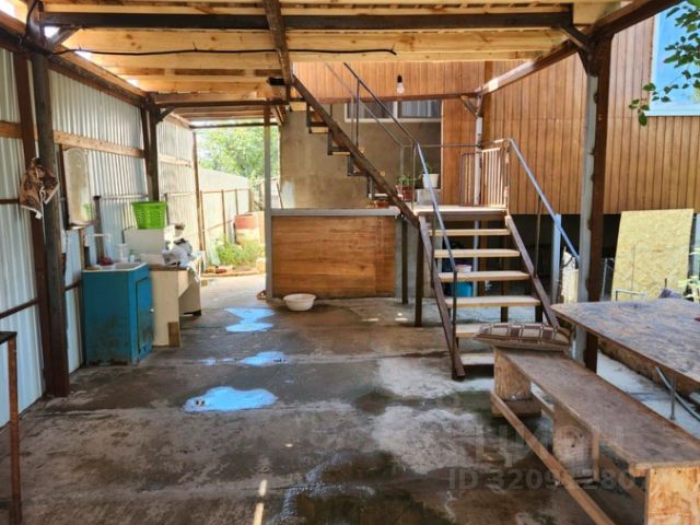Широкий мощеный двор. Во дворе расположен гараж со смотровой ямой, времянка-летняя кухня, с газовым отоплением и подвалом, достаточно удобная и просторная, вполне подходит для постоянного жилья или под отдельный гостевой дом. Дальше по двору расположены большие хоз. постройки, приспособленные для содержания птицы и больших домашних животных. Помещения чистые, животных уже давно не держат. Можно переделать одну постройку, площадью 50 м², под баню-сауну с гостевой комнатой. Дополнительно есть бак для воды для полива огорода.