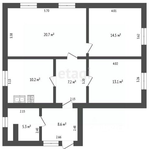 Дом: Общая площадь: 56,2 м². Дом построен из экологически чистого камня-ракушняка. Планировка: 3 комнаты, кухня, санузел. Все коммуникации центральные: газ, электричество, водопровод, канализация, интернет. Состояние отличное, готов к заселению.