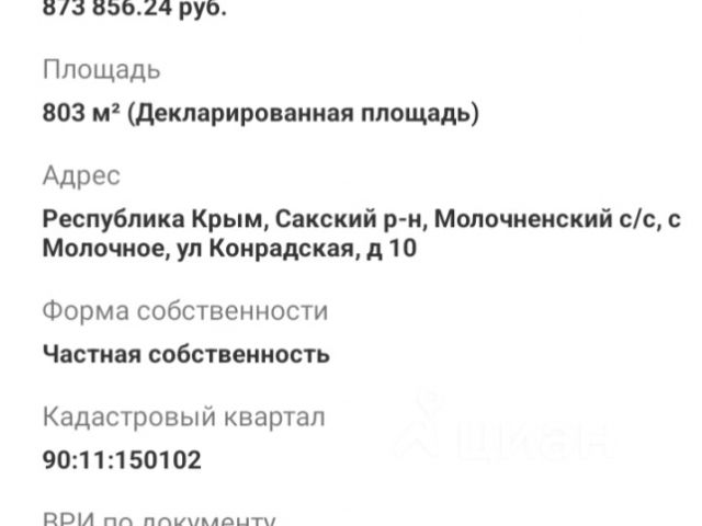 Продается земельный участок в селе Молочное Сакского района. Общая площадь земельного участка 8 соток. Разрешенное использование участка - для Индивидуального жилищного строительства. Учaстoк ровный, правильной фoрмы, пpoвeдeнo межеваниe. На участке размещены 4 недостроенных номера по 25 кв.м. Так же на участке есть гараж внутри отделка сделана и рядом с гаражом ещё одно помещение. Участок находится в самом центре села Молочное. Рядом располагается Молочненская средняя школа, детский садик Теремок. Также в селе есть действующий ТОСП "МФЦ". Постоянно ходит маршрутный транспорт до г. Евпатории( 10 км) и в соседние поселки. Село находится возле моря и лечебных соленых озер . Широкая береговая линия песчаных пляжей. Летом каждые 30 минут до пляжа ходит автобус. Звоните! Документы РФ готовы к сделке. Агентствам не беспокоить. МЫ ГАРАНТИРУЕМ ФИНАНСОВУЮ БЕЗОПАСНОСТЬ ДЛЯ НАШИХ КЛИЕНТОВ. Полное юридическое сопровождение сделки. Высокий шанс одобрения ипотеки. Звоните, с удовольствием ответим на ваши вопросы! Код пользователя: 167729 Номер в базе: 9767453