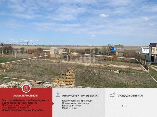 Внимание АКЦИЯ!!! Выгодное предложение, , в 4 км от Евпатории и великолепного песчаного пляжа. Поселковые коммуникации по границе, недалеко от трассы. Можно ли строить дом? Согласно федерального закона 299-ФЗс с 1 марта 2022 г. на земельных участках, предоставленных крестьянско-фермерским хозяйствам разрешено строить, ставить на кадастровый учет и регистрировать права собственности. Требования к строительству жилья: на участке разрешено построить только 1 дом здание не выше 3-х этажей площадь дома не более 500 кв. м, пятно застройки должно составлять не более 0,25% от площади земельного участка Как зарегистрировать такой дом? До 1 марта 2031 года в РФ будет действовать упрощенный режим регистрации таких объектов. Для регистрации дома в Росреестр необходимо предоставить следующие документы: правоустанавливающий документ на земельный участок, технический план и декларацию об объекте недвижимости. На данном этапе участок ЛПХ, но после вхождения в границы населённого пункта будет ИЖС. Спешите приобрести по цене 2024 года, в сезон цена поднимется.