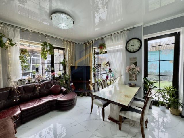 Основной дом имеет один главный вход с просторным холлом и местами для хранения, три спальни: одна со своим санузлом и душем, один гостевой санузел и один санузел на две спальни. Предусмотрено отдельное помещение для постирочной. Светлая и просторная кухня-гостиная со встроенной кухонной мебелью и техникой, оборудованный остров. Обеденная зона со стеклянным эркером и видом на вечнозеленые кипарисы будет радовать новых владельцев. Застекленная веранда 25 м² со входом из кухни-гостиной и выходом во двор - идеальное пространство для релакса с видом в Ваш зеленый двор.