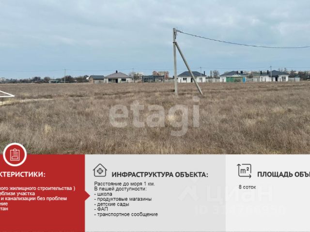 Продам земельный участок 6 соток, с. Уютное на пересечении ул. Айвазовского и 9 Мая, на закрытой территории, в районе Песчанки, 10 км до Евпатории.