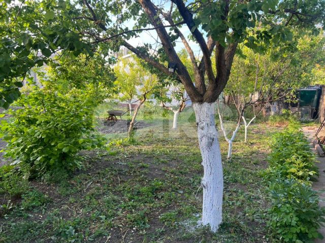 На приусадебном участке выполнено капельное орошение подключено к 2 м3 уличной емкости. Забор выполнен из камня, участок облагорожен, тротуарная плитка, газон, плодовые деревья слива, персик, черешня, виноград, груша, яблоня, огород очень хорошая земля, есть вольер для собаки, беседка.