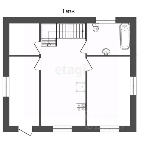 На первом этаже находится кухня, санузел и две комнаты, на втором одна большая комната и две маленькие.