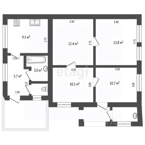 Три спальни — 9,60 м², 10,24 м² и 9,60 м²: уют, покой и личное пространство для каждого.