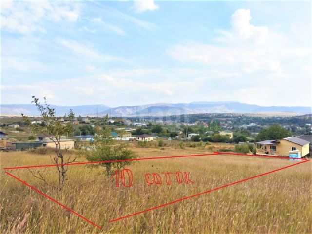 Симферопольский район, с. Доброе, 10 соток ИЖС, участок имеет уклон, Свет, Газ в 20 метрах от участка. Школа, садик, спортивная школа, гипермаркет, остановка общественного транспорта в пешей доступности! Потрясающий вид на Чатр-Даг, Демерджи и Добровскую долину. До моря (Алушта 25 Км. до Ялты 70 Км.)