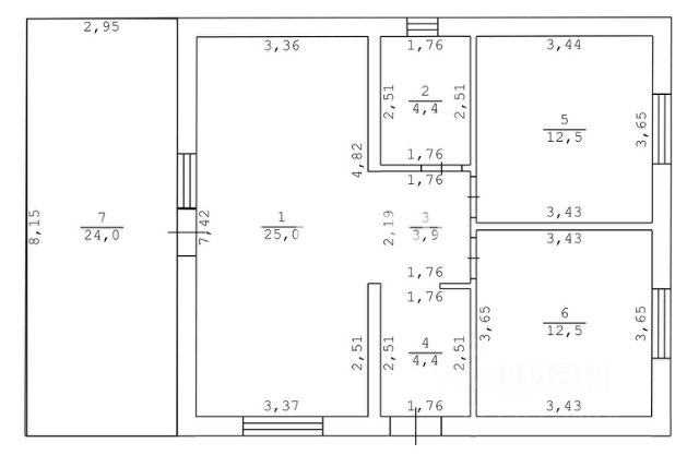 В доме 3 комнаты, кухня гостиная, совмещенный санузел и прачечная (бойлерная).