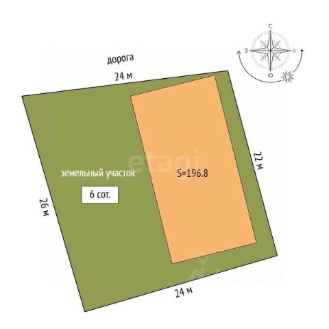 • ✅ Объект наибольшей площади: 196,8 м² (площадь дома), 7 сот. (площадь участка)