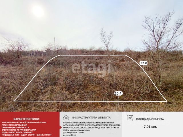 | участок под СНТ | до ЦЕНТРА 24 км | ИПОТЕКА ВОЗМОЖНА Продается земельный участок в селе Перевальное (Симферополь) добровское сельское поселение, СТ Родничок . Площадь участка 5,46 соток. Вид разрешенного использования: ведение садоводства. Локация: до центра Перевального 2,5 км, до детских садов и школы 2,5 км, до Симферополя 24 км, до Алушты 33 км. Коммуникации: электричество на стадии подключения, установлены опоры, ближайшая точка подключения на расстоянии 200 м. Водоснабжение - бурение скважины. Количество собственников: 1Дополнительно оплачивается комиссия покупателя в случае подбора объектов недвижимости.Объект 108151