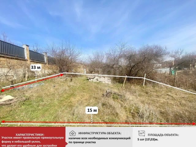 Участок 15 соток ИЖС. Правильной формы, чистый, без мусора. Можно разделить и продать дороже. Все коммунальные коммуникации по границе. По улице живут соседи. До Симферополя 15 мин на машине, автобусы ходят каждые 40 мин. В деревне есть магазины, ФАП, детсад, школа. Документы готовы к продаже. Юридическое сопровождение сделки. Готовы рассмотреть любую форму расчета и готовы к дистанционной сделке. 550374 Номер объекта: #1/550374/23345