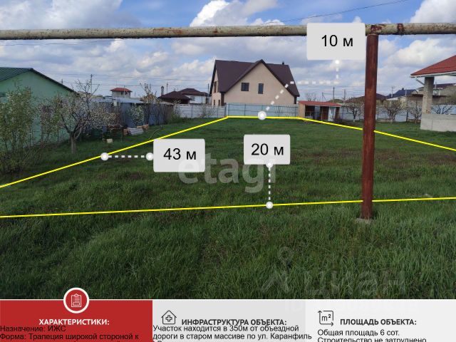БЛИЖАЙШИЙ ПРИГОРОД! В продаже отличный участок, в 350 м от Объездной дороги, находится в ближайшем пригороде Симферополь, с. Мирное, по ул. Каранфиль! Общая площадь участка 6 сот., вдоль него проходя все Центральные коммуникации- свет, газ, вода. Что позволяет начать строительство дома сразу. А мы в свою очередь можем БЕСПЛАТНО предоставить вам на выбор застройщика который качественно построит дом вашей мечты! Участок находится не на проездной улице, что гарантирует отдаленность и от транспорта и пыли, со всех сторон с вами граничат соседи, поэтому постоянная стройка вокруг вас тоже обойдет стороной. Доступность с участка до города 3 минуты на автомобиле, ближайшие детский сад и школа в 5 минутах в микрорайоне М. Жукова. Магазины, аптека и ПВЗ в шаговой доступности в начале массива, что делает загородную жизнь более организованной, а доступ к городу на авто-ещё и комфортной, т.к. городская инфраструктура на расстоянии вытянутой руки! В массиве есть более 100 предложений с ценой от полутора миллионов под любые запросы! Компания Этажи - Лучшее решение для клиента! Звони и записывайся на просмотр в удобное для вас время! Номер объекта: 6786751 МЫ ГАРАНТИРУЕМ ФИНАНСОВУЮ БЕЗОПАСНОСТЬ ДЛЯ НАШИХ КЛИЕНТОВ. Полное юридическое сопровождение сделки. Высокий шанс одобрения ипотеки. Звоните, с удовольствием ответим на ваши вопросы! Код пользователя: 117872 Номер в базе: 6786751 Продается загородная недвижимость на улице Каранфиль в селе Мирное.