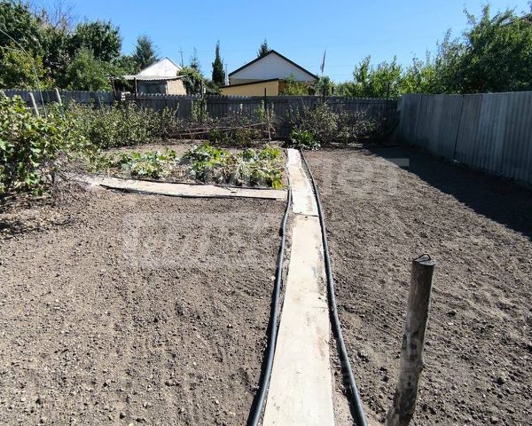 Весь двор огорожен забором из сетки - рабицы, двор вымощен тротуарной плиткой , есть 2 гаража, есть возможность сделать мангальную зону отдыха и барбекю. Высажен сад из плодовых деревьев