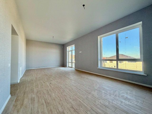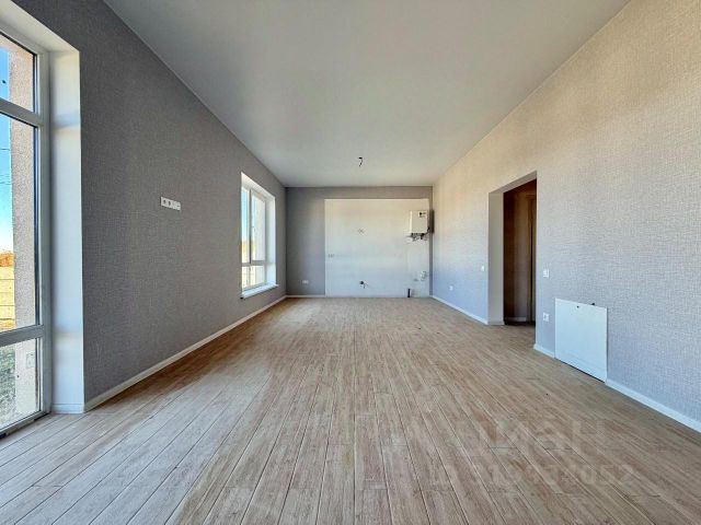 просторная, светлая кухня-гостиная с выходом на капитальную крытую террасу на фундаменте во всю стену,, на террасе тоже теплый пол и утепленная крыша, что позволяет ее присоединить к дому сделав остекление, выведения электричество.