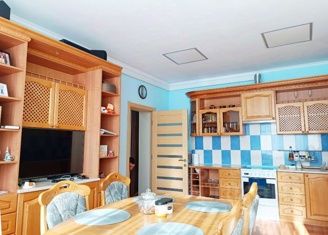 Трёхэтажный дом площадью 340м²расчитан на проживание 2х -3х семей, на 1м этаже 2 входа, 2 кухни, зал с камином, гардеробная, веранда, санузел, тёплый гараж. Отопление газовое двухконтурным котлом, в крайнем случае камином легко отопить дом.