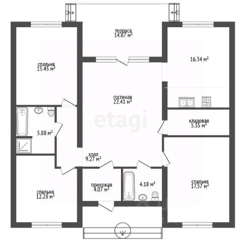 Площадь дома: 133,6 кв. м