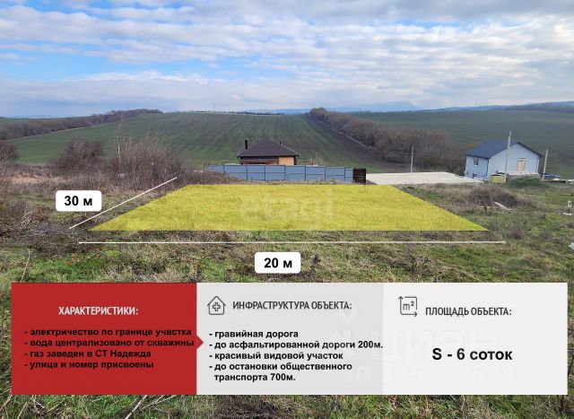 6 соток, есть межевание. Ведение садоводства (жилые дома с пропиской).