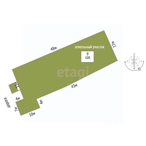 - земельный участок прямоугольной, вытянутый: 67/100 доли от 6 соток - ИЖС.